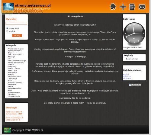 Czy Państwo też uważacie, że osiągnięcie sukcesu prowadząc serwis internetowy jest rzeczą trudną? Wielu prawdopodobnie, zgubnie tak myśli. O fakcie czy serwis osiągnie sukces, czy umrze śmiercią naturalną decyduje przede wszystkim użyte oprogramowanie i chęć do pracy właściciela. Nie sugerujcie się porażkami właścicieli serwisów stworzonych za 20zł - spróbujcie sami z zachowaniem pełnego profesjonalizmu w swoim działaniu. Wykonam dla Państwa profesjonalny katalog stron internetowych w cenie 400 PLN netto. Rozpocznijcie swoją przygodę z biznesem internetowym już dziś! Internet do tej pory nie jest w pełni nasycony i opłaca się każdemu kto podejdzie poważnie do sprawy. Katalog, który oferuję oprócz samego modułu zapisującego adresy e-mail użytkowników (aby później wysłać im płatne mailingi), umożliwia też emisję reklam Google Adsense, dzięki którym można uzyskać wymierne zyski za kliknięcia w reklamy.